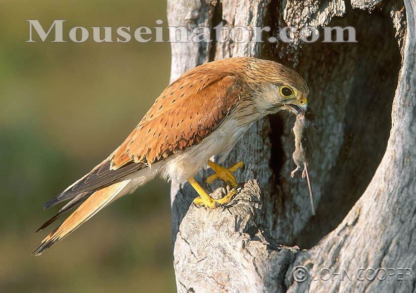 A Nankeen Kestrel feeding young in a nesting hollow. Photo by John Cooper